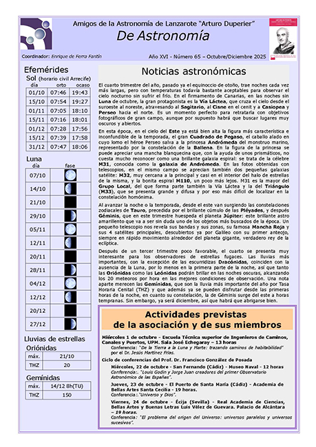 Boletín DE ASTRONOMÍA Nº 65 - Octubre-Diciembre 2025 |